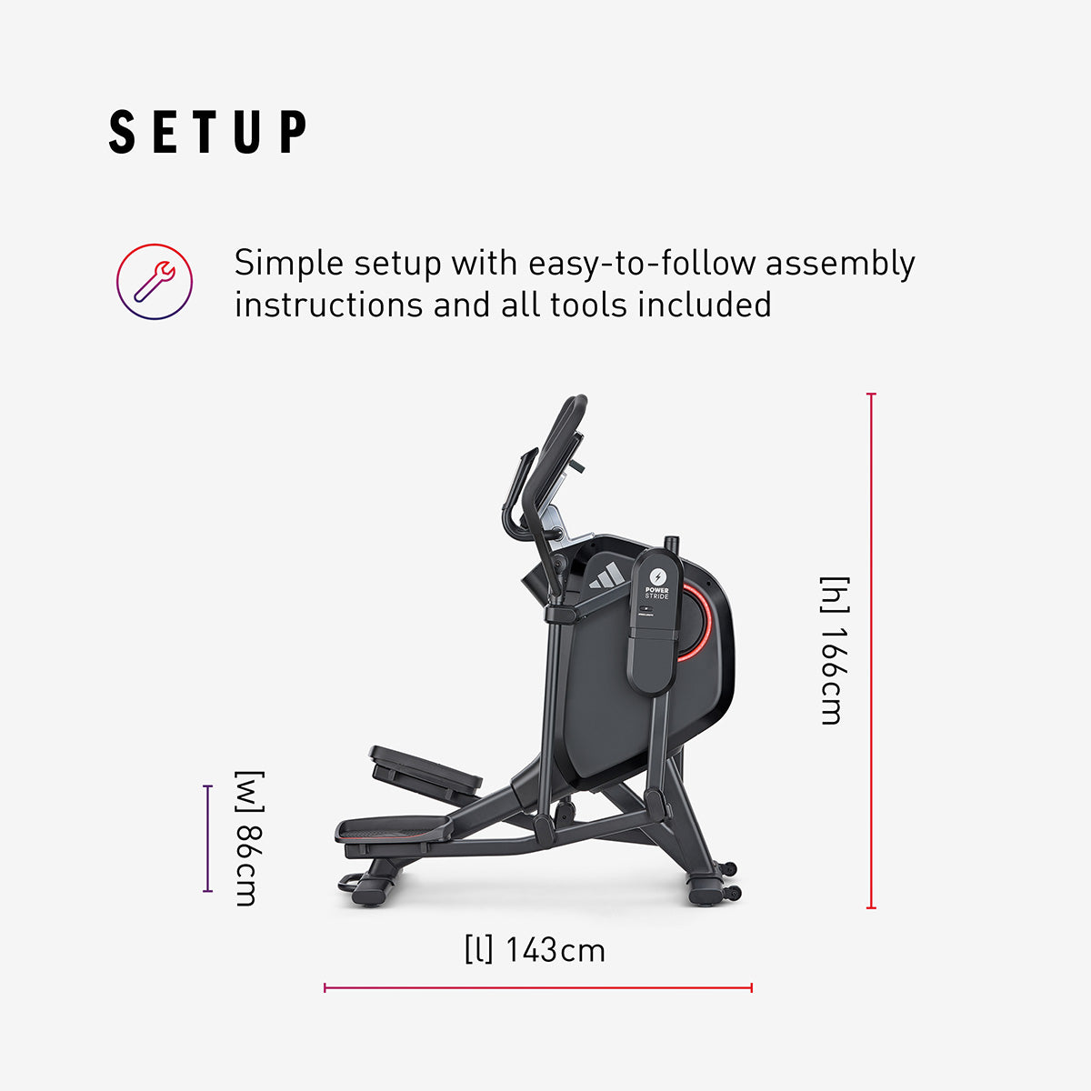 - Stride Length: 46cm-58cm (18"-23”) with quick stride handle keys