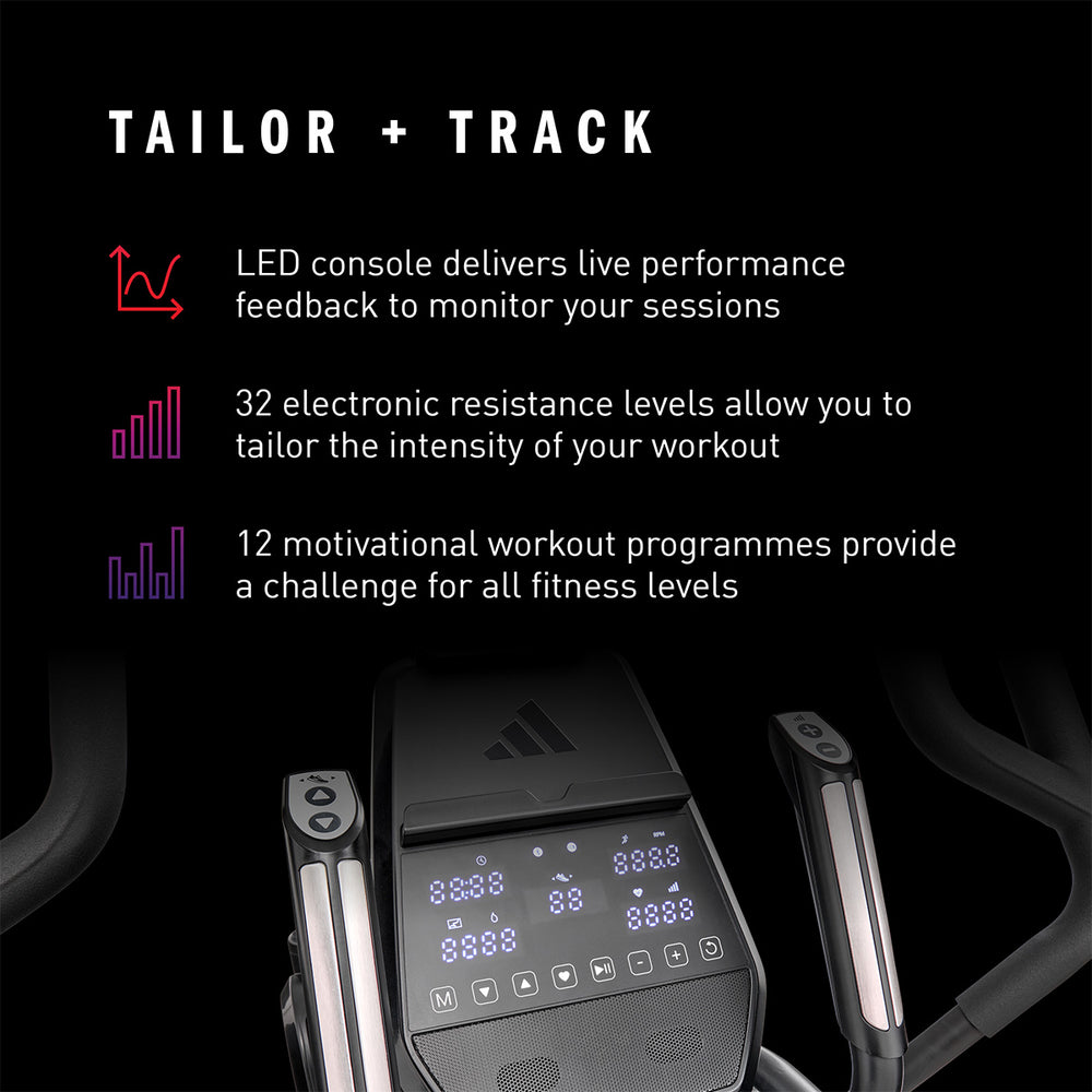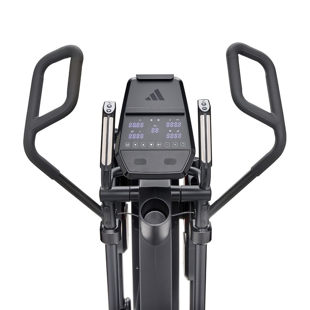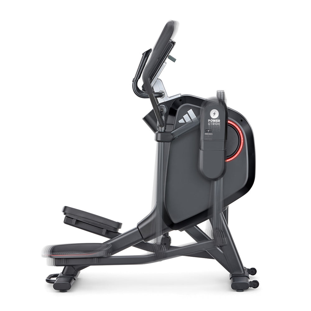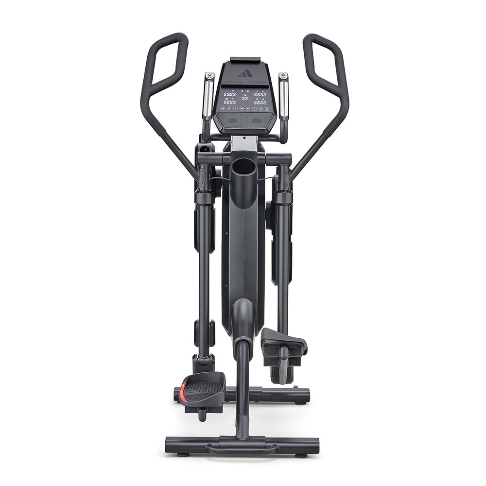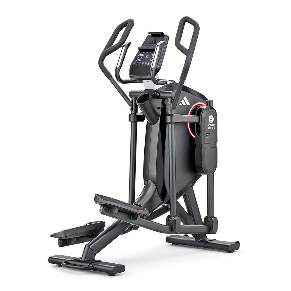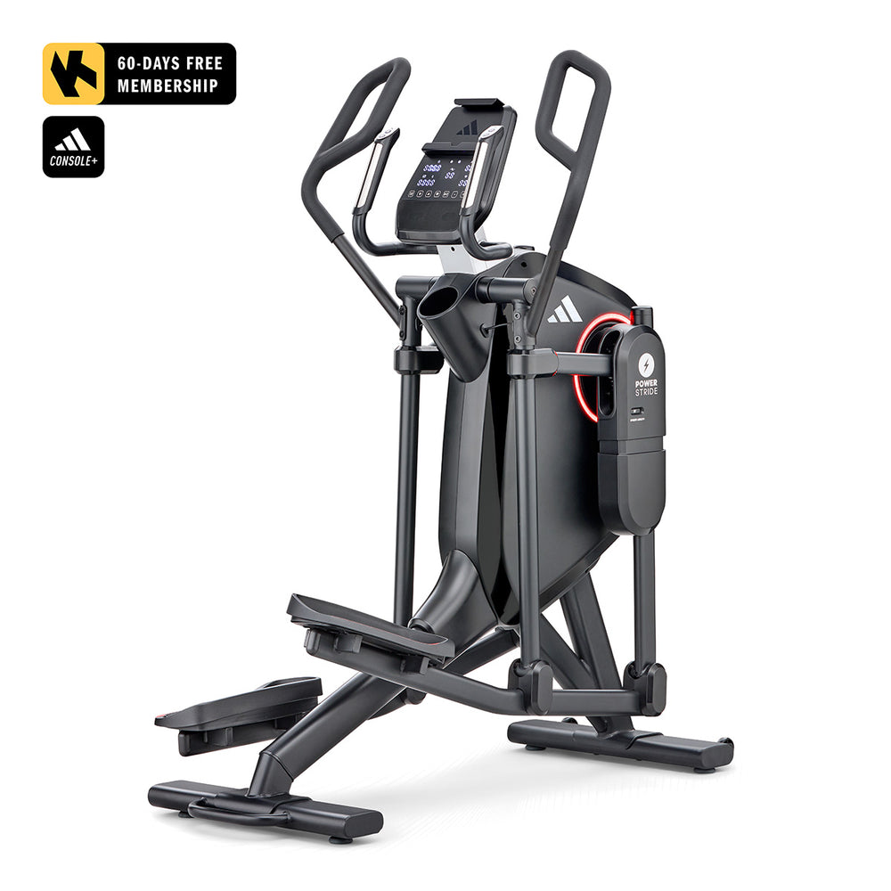 Get a comprehensive and comfortable full-body workout that engages most major muscle groups using the adidas X-800 Power Stride elliptical cross trainer. Its 6kg (13lbs) Performance + flywheel combined with computer-controlled magnetic resistance system provide smooth, quiet and consistent operation, making it an ideal choice for home environment. To let you customise your sessions, as well as match your fitness level and goals, there are 32 levels of resistance and 12 pre-set programmes. The X-800 benefits from an adjustable stride (18β-23β) that maximises comfort for users of different heights thanks to 6 stride lengths to choose from. To spice things up and add variety and motivation to your routine through a more immersive experience, the elliptical is compatible with Kinomap (60-day Free trial included) and adidas Console+ apps. A perfect choice for full-body burn, the machine has an intuitive LED console and keeps you entertained and focused on the goal with its integrated tablet holder and Bluetooth speakers. To maximise comfort during longer sessions, there are NRG Tech cushioned pedals.