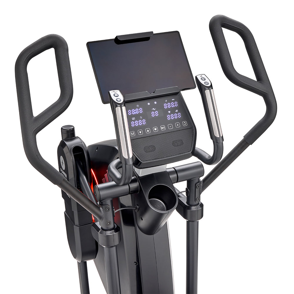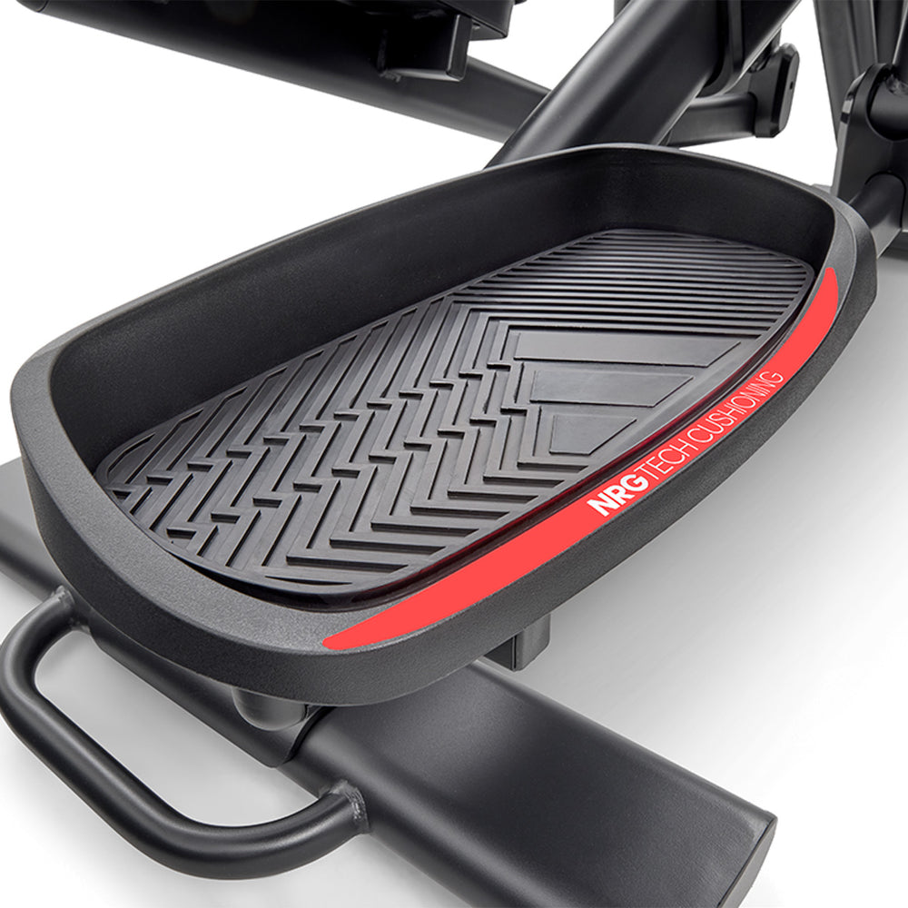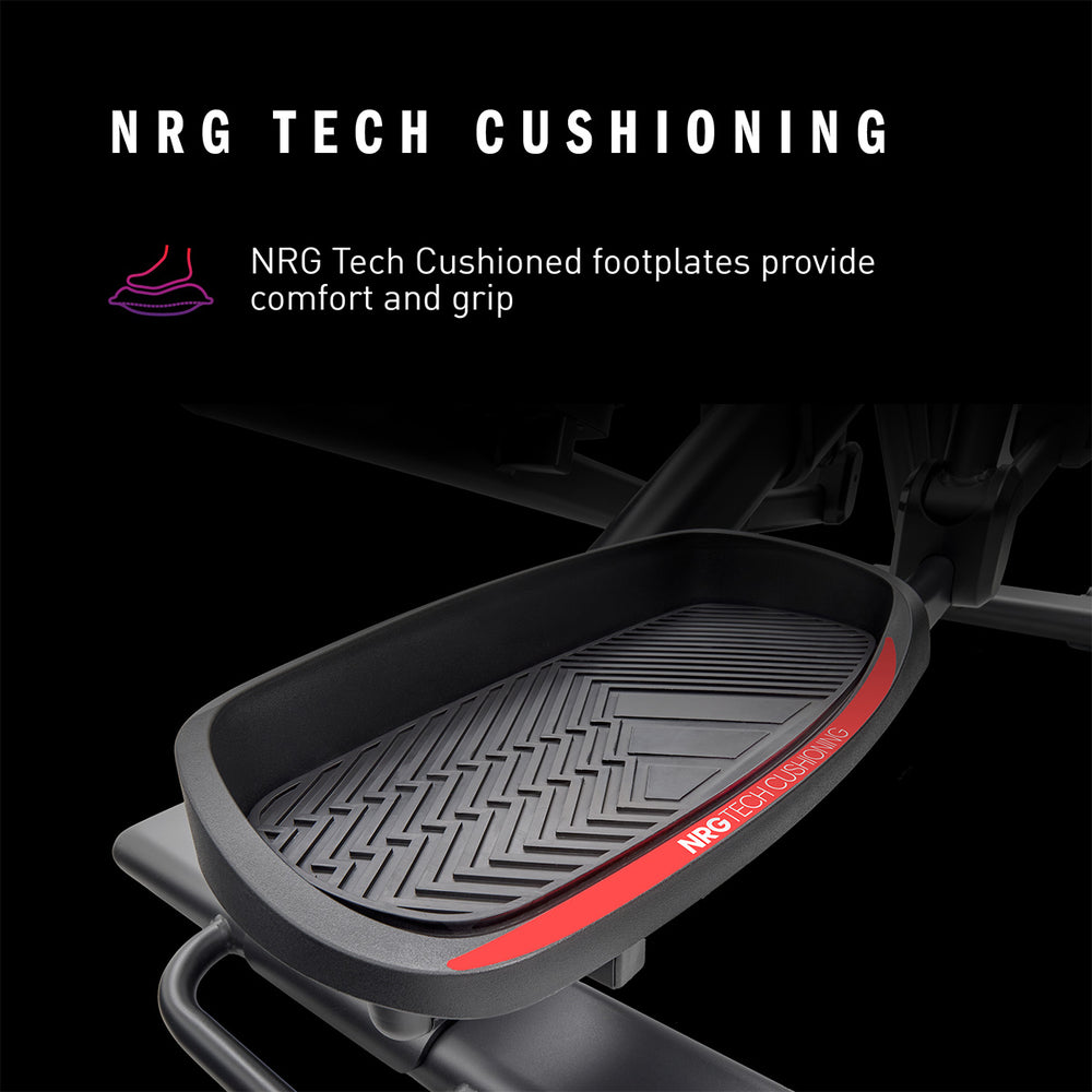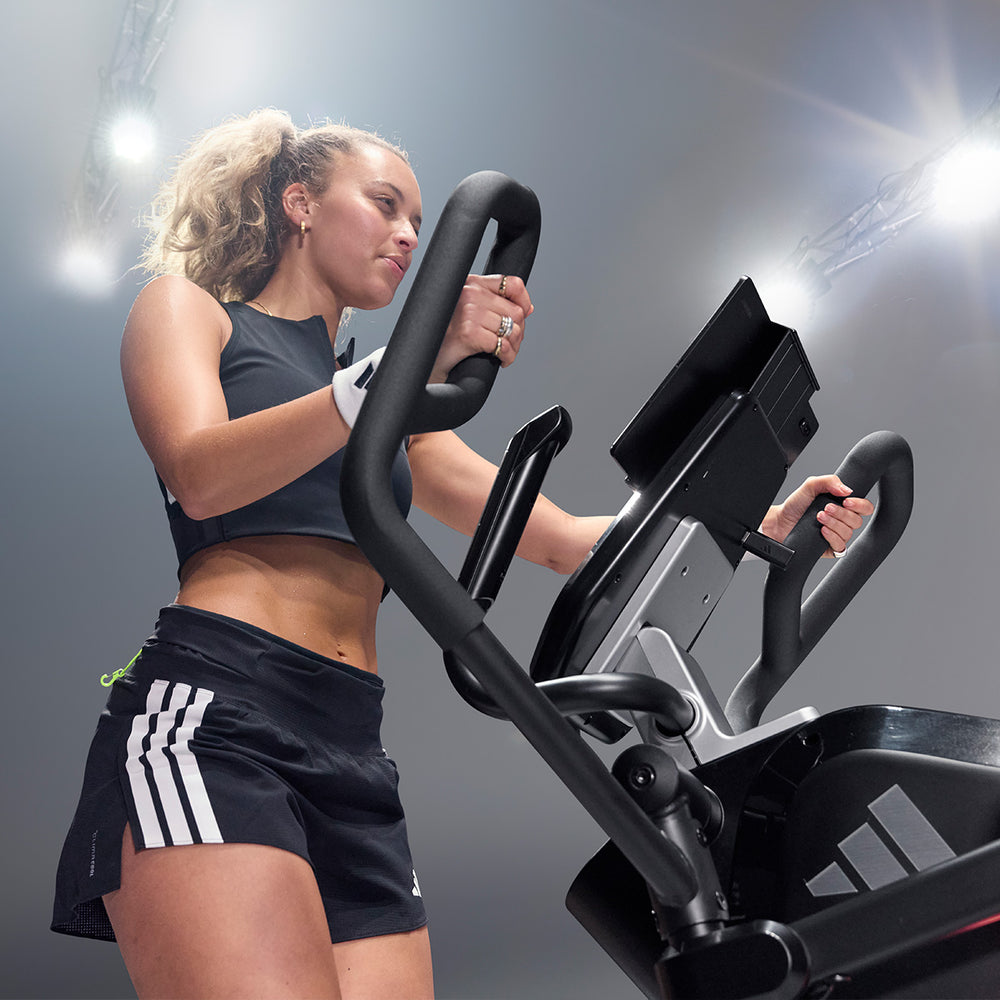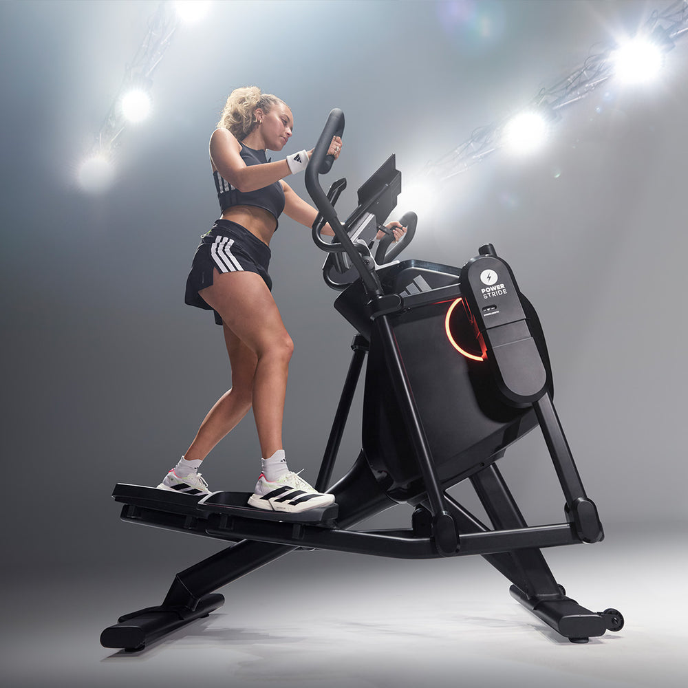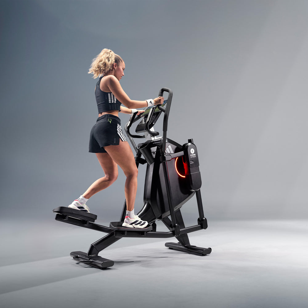 Get a comprehensive and comfortable full-body workout that engages most major muscle groups using the adidas X-800 Power Stride elliptical cross trainer. Its 6kg (13lbs) Performance + flywheel combined with computer-controlled magnetic resistance system provide smooth, quiet and consistent operation, making it an ideal choice for home environment. To let you customise your sessions, as well as match your fitness level and goals, there are 32 levels of resistance and 12 pre-set programmes. The X-800 benefits from an adjustable stride (18β-23β) that maximises comfort for users of different heights thanks to 6 stride lengths to choose from. To spice things up and add variety and motivation to your routine through a more immersive experience, the elliptical is compatible with Kinomap (60-day Free trial included) and adidas Console+ apps. A perfect choice for full-body burn, the machine has an intuitive LED console and keeps you entertained and focused on the goal with its integrated tablet holder and Bluetooth speakers. To maximise comfort during longer sessions, there are NRG Tech cushioned pedals.