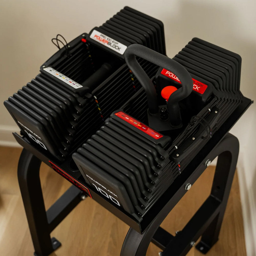 - Compatible with both non-expandable and expandable PowerBlock dumbbells up to 100lbs (45.4kg) per hand