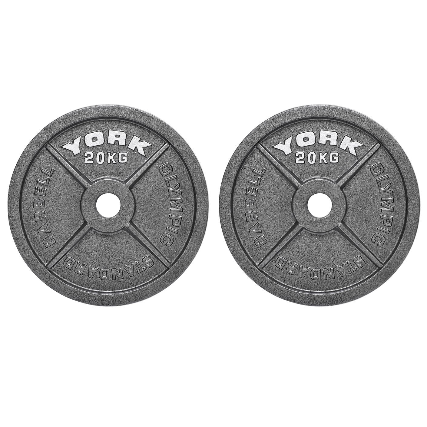 York 2 x 20kg Hammertone Cast Iron Olympic Weight Plates